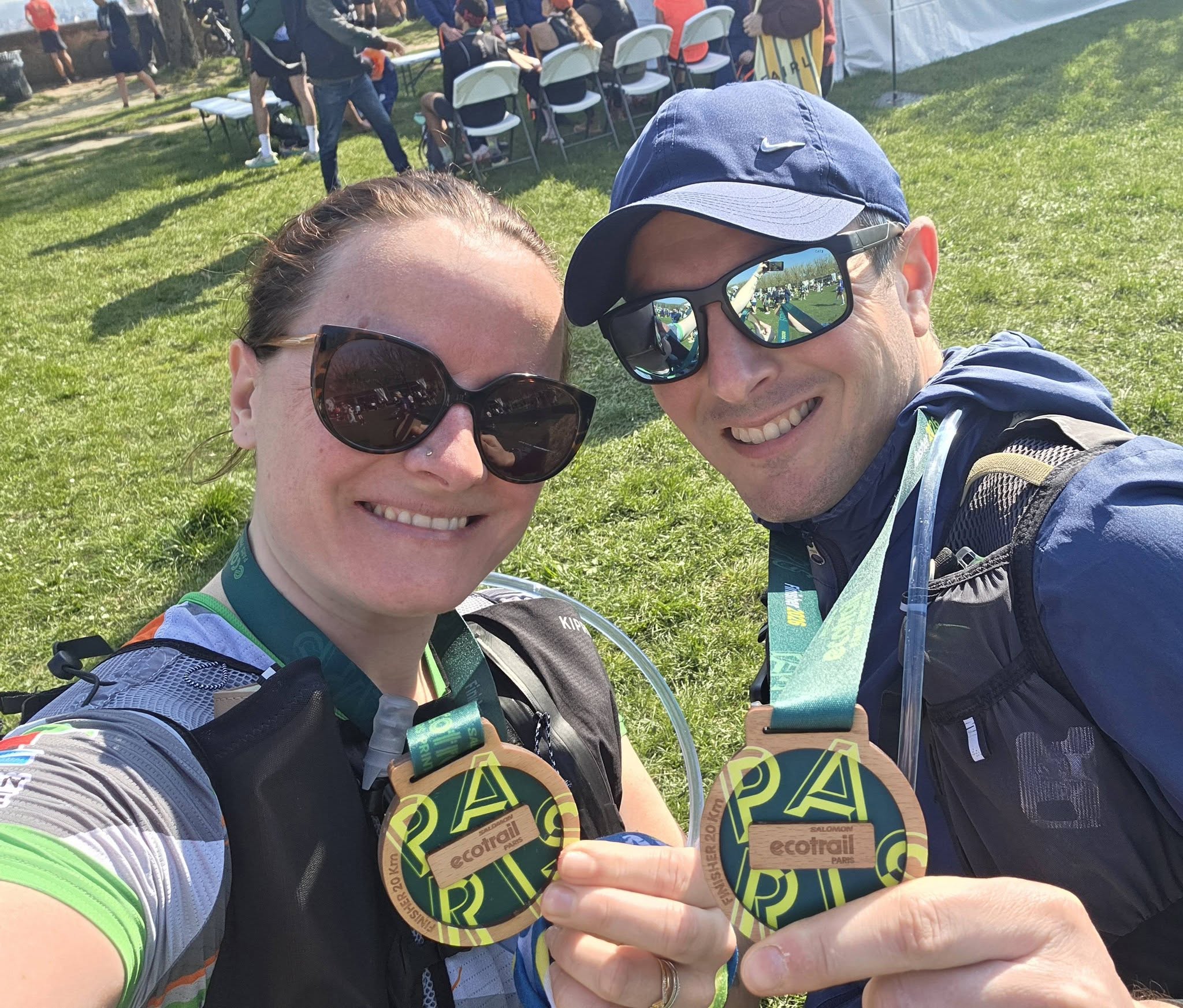 Plus loin le fameux ECOTRAIL de Paris avec le couple souriant Elsa & Franck et aussi Eric qui est abonné (voir son récit plus loin)